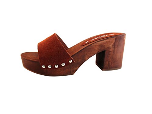Zoccolo Donna - in Vero Legno -Vera Pelle Camoscio -SilferShoes - Made in Italy - Colore Marrone - Colore Ruggine- (37)
