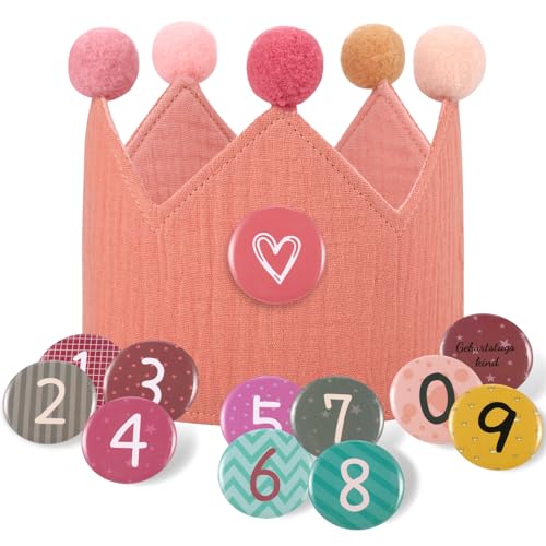 【Ampiamente Utilizzato】Questo cappello di compleanno è un accessorio ideale per i servizi fotografici per migliorare la carineria e la creatività delle foto. È possibile utilizzare questi bottoni da 0 a 9 per segnare il mese del bambino o una data speciale, ideale per gli album per bambini.