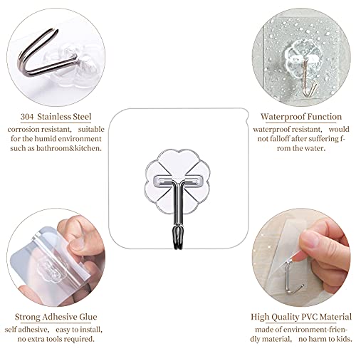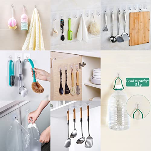 ZOCONE Ganci Adesivi Trasparenti, 20 Pezzi Autoadesivo Gancio Adesivo Bagno Adatto Utilizzato in Cucina, Bagno, per Appendere Asciugamani,Vestiti,Chiavi,Cappelli etc(5kg Max)