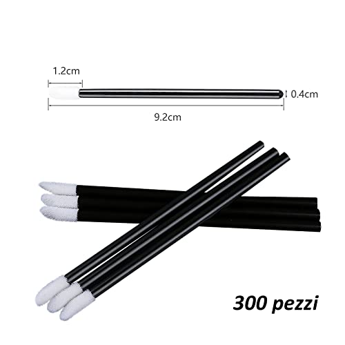 ZOCONE 300 PCS Pennelli per Labbra Usa e Getta, Monouso Pennelli Labbra Make up Pennello per Rossetto Labbra Microbrush Micro Pennelli per Applicatori per Dettagli per Sopracciglia, Labbra, Nero