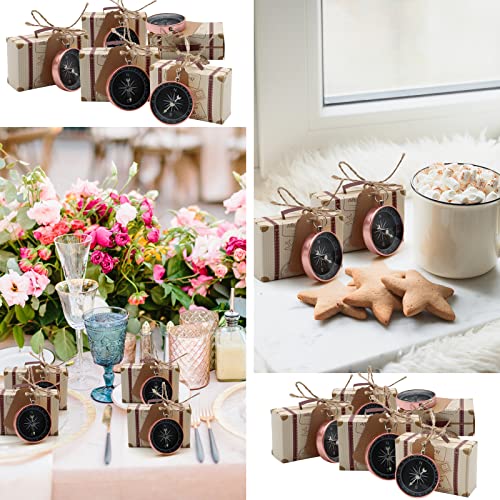ZOCONE 24 Pezzi Bomboniera Regalo Scatole+24 Bussola Bomboniera e Etichette Kraft, Scatoline Portaconfetti per Bomboniere Comunione Bambino Matrimonio Anniversario Laurea Festa(B)