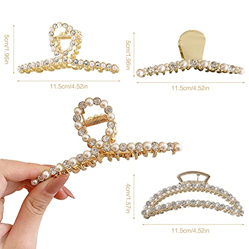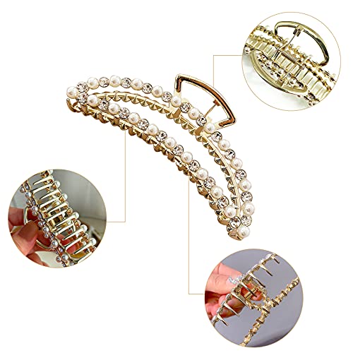 ZOCONE Pinza Capelli Donna Strass Perle Artigli per Capelli, 3 PCS Mollette per Capelli Perle Strass Fermagli Capelli Donna Elegante Pinza Capelli Grandi Acrilica in Metallo per Ragazze e Donna