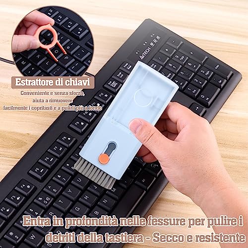 Pulizia Multifunzionale: il kit pulisci tastiera pc include una penna multiuso per la pulizia, la punta in silicone può pulire le macchie nelle fessure e la spazzola morbida può essere utilizzata per pulire la porta di ricarica. Pulisci telefono pulisce in modo più profondo e pulito.