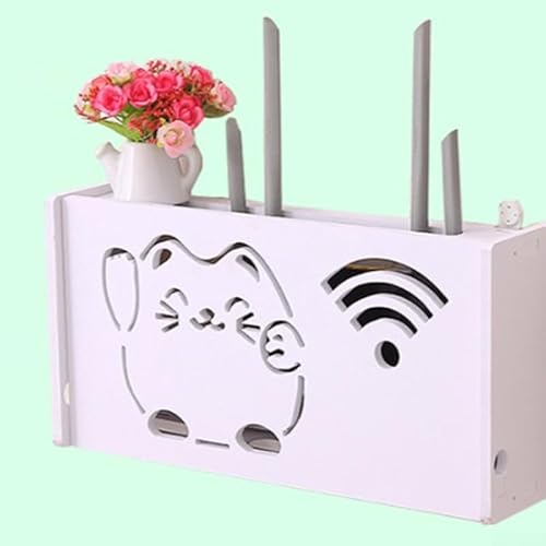 Zoegneer Scatola portaoggetti per router WiFi wireless, in PVC, senza trapano, ripiano per router, montaggio a parete, con staffa per cavi, scatola organizer per cavi (gattino)