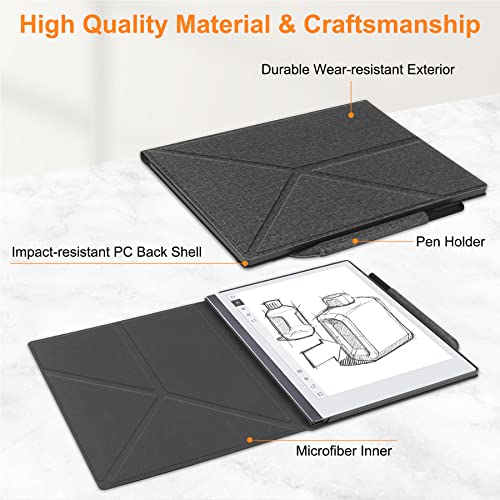 ZOENHWA Custodia per Remarkable 2 10.3 Pollici (2020 Released) - con supporto pieghevole stabile e tasca per penna, 10.3" Remarkable 2 Digital Paper Tablet Cover (Non adatta Remarkable 1)-Grigio