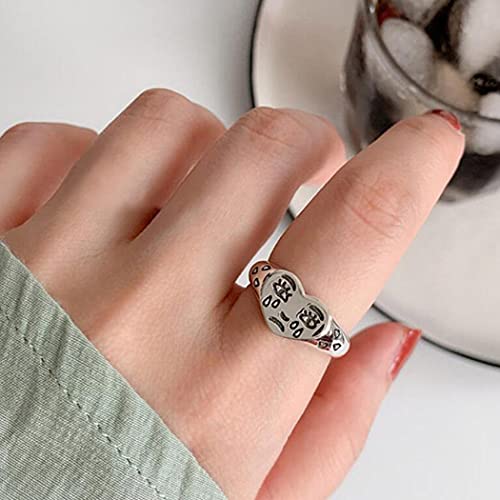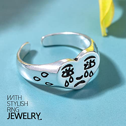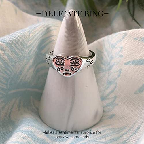 Zoestar - Anello aperto con cuore in argento, divertente pianto per il viso, stile vintage e triste, per donne e ragazze