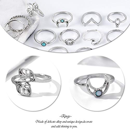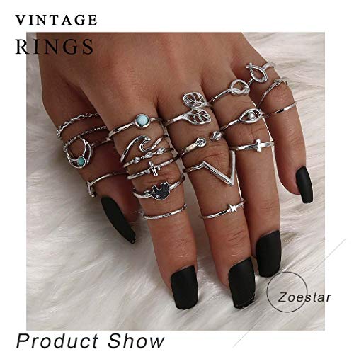 Zoestar Boho Anelli per dita in argento con cristallo luna, set di 20 anelli per nocche in turchese impilabili per donne e ragazze