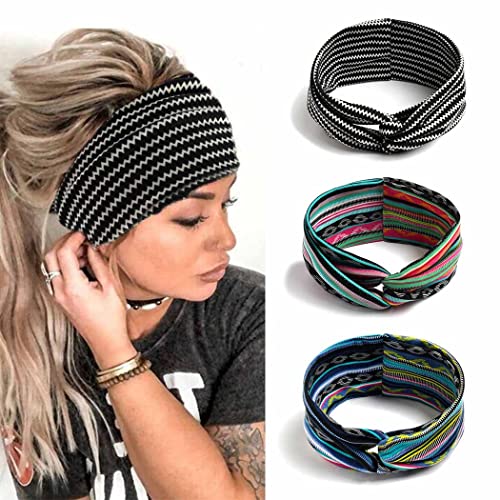 Zoestar Boho Striple - Fasce nere con testa a croce incrociata, avvolgere la testa di yoga, eleganti fasce elastiche per capelli, accessori per capelli alla moda, per donne e ragazze, confezione da 3