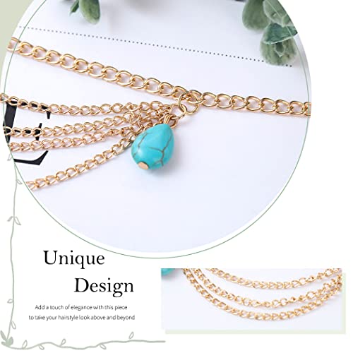 La catena della testa d'oro è realizzata in lega di alta qualità e turchese. Non si sbiadirà e si romperà facilmente. Colore oro per scegliere.