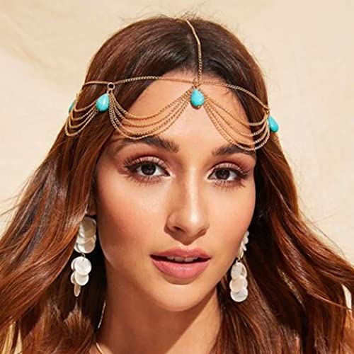Zoestar Catena con testa Boho Turchese Gioielli da sposa a strati in oro Copricapo Festival Fascia per capelli nappa Accessori per capelli per donne e ragazze