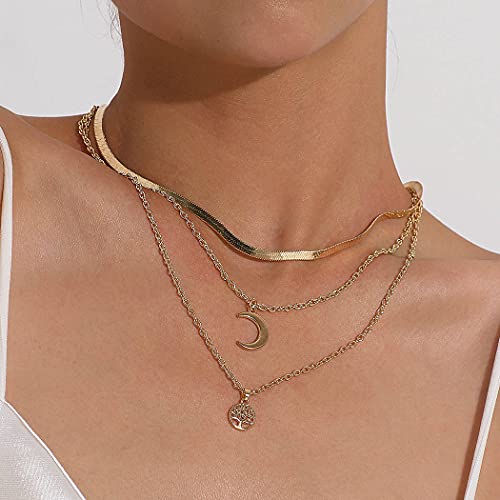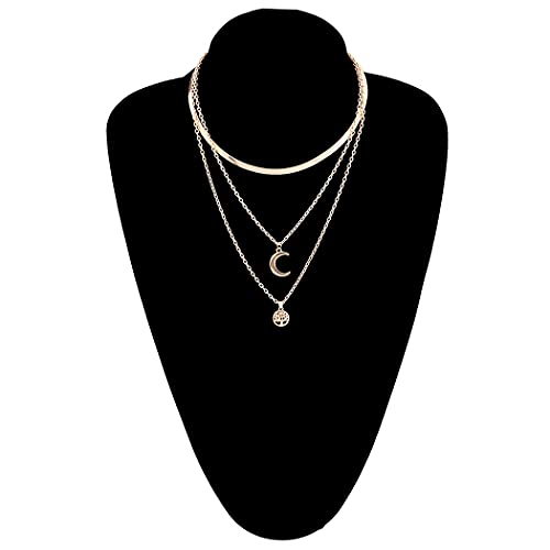Zoestar Collana punk a strati con ciondolo a forma di albero della vita, collana con ciondolo a forma di luna e serpente per donne e ragazze