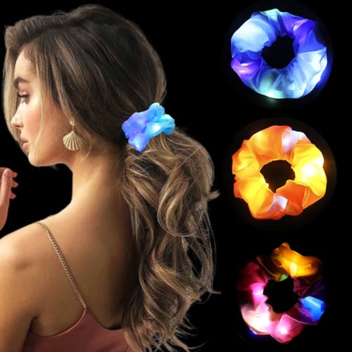 Zoestar Elastici per capelli con luci a LED, per coda di cavallo, luminosi, accessori per capelli per donne e ragazze (confezione da 3) (stile 1)