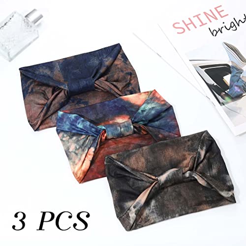 Zoestar Fasce larghe boho, sciarpe per testa di yoga, tinte con turbante annodate, fasce per capelli alla moda, eleganti, elastiche, accessori per capelli per donne e ragazze, confezione da 3