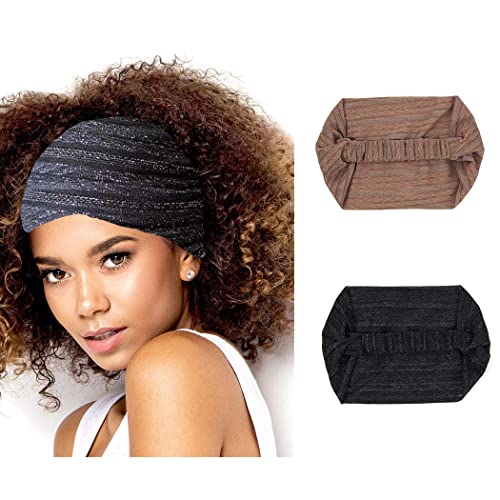 Zoestar Fasce larghe per la testa di yoga, eleganti fasce elastiche per la testa, per l'allenamento, per le donne e le ragazze, confezione da 2, colore: nero e cachi