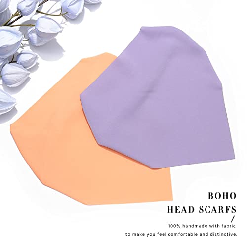 Zoestar Foulard in stile boho, con testa a triangolo, in chiffon, per capelli in puro colore, turbante, per donne e ragazze, 2 pezzi (viola e arancione)