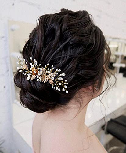 Zoestar - Pettini per capelli da sposa a forma di farfalla, con fiore in oro e cristallo, accessorio per capelli da sposa e da donna