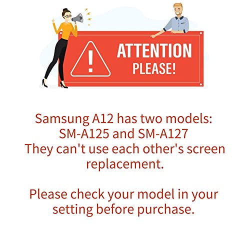 Attenzione: questo modulo è un ricambio solo per Samsung Galaxy SM-A125, 6,5 pollici, compatibile con il modello SM-A125 A125F A125U A125M A125F/DS A125F/DSN. È un modulo LCD 720x1600 pixel. Si prega di non utilizzarlo per altri modelli, si prega di controllare il modello del telefono prima dell'acquisto **NON PER SM-A127**.