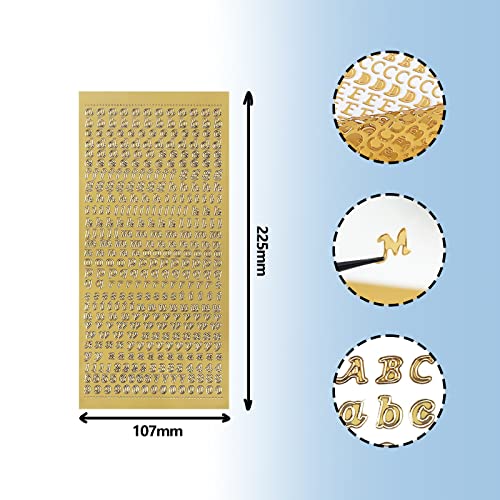 ZoeTekway Confezione da 4 adesivi dorati, impermeabili, impermeabili, per battesimi, matrimoni, buste e biglietti di auguri, 4 fogli di adesivi con lettere maiuscole e minuscole.