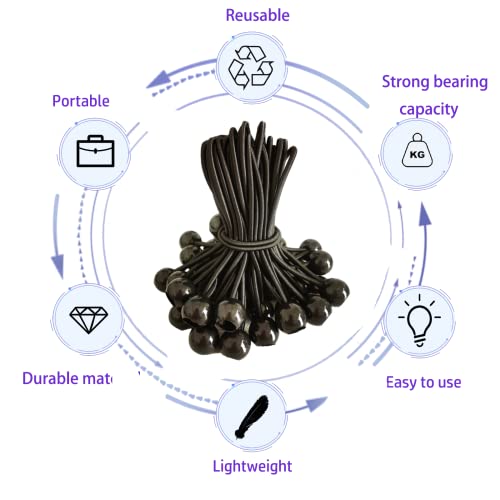 Durevole e ad alta elasticità: i nostri elastici con sfera sono realizzati in gomma altamente elastica, all'interno sono realizzati in 100% lattice, grazie a questa alta qualità sono stabili, durevoli e resistenti alle intemperie. Si può legare intorno a tutti i tipi di anello, aste e colonne per un'incredibile affidabilità.