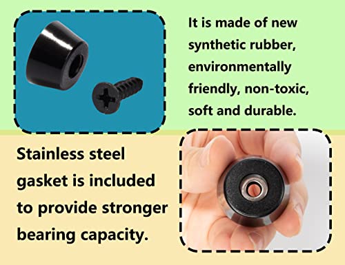 ZoeTekway 12 piedini in gomma nera per taglieri con viti in acciaio inox, piedini in gomma a vite, piedini rotondi in gomma, avvitabili, per la maggior parte dei dispositivi di mobili