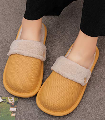 ZOGEME Donna Uomo Inverno Pantofole Morbido Caldo Peluche Ciabatte da Casa Comode Antiscivolo Impermeabile Invernale Pantofole Interne/Esterno con Fodera Rimovibile,Giallo,38/39EU