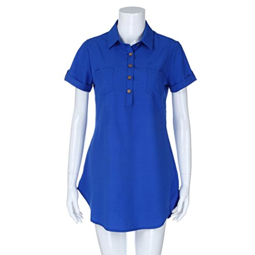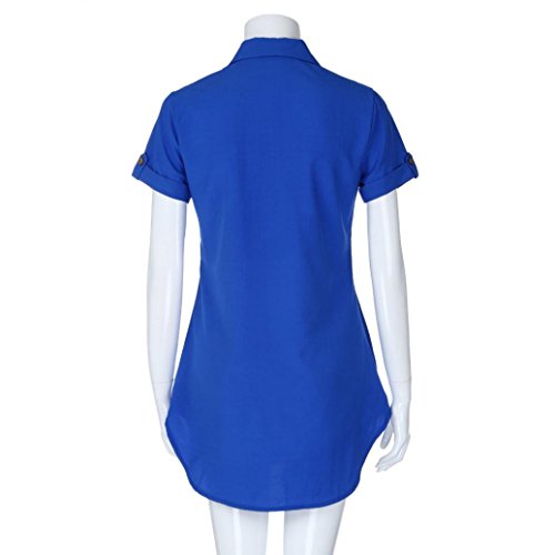 Zolimx Abito Donna, Manica Corta Abito Blu Vestito Denim Solido Abbassare Collare Ginocchio Mini Dress