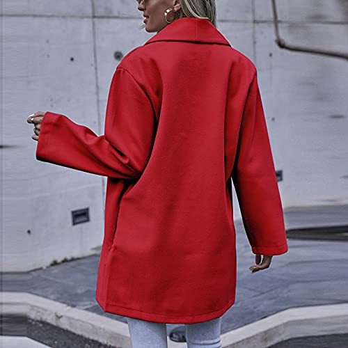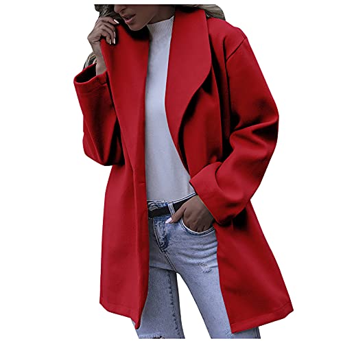 Zolimx Cappotto di Lana Allentato, Cappotto di Lana Invernale con Cappuccio da Donna Maniche a Pipistrello Giacca Tinta Unita Cappotto di Trench Lungo Caldo Cappotto Outwear(B-Rosso,L)