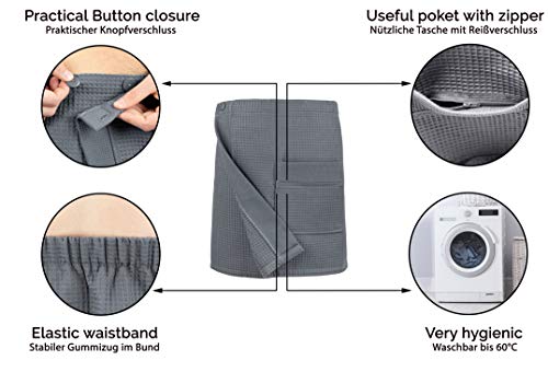 ZOLLNER Kilt da Sauna per Uomo, 100% Cotone, Taglia Unica, Grigio
