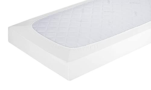 MATERIALE: Il proteggi materasso in raffinato Jersey ha un peso di ca. 180g/mq. Gli elastici sugli angoli fanno in modo che non scivoli e che non disturba durante la notte.