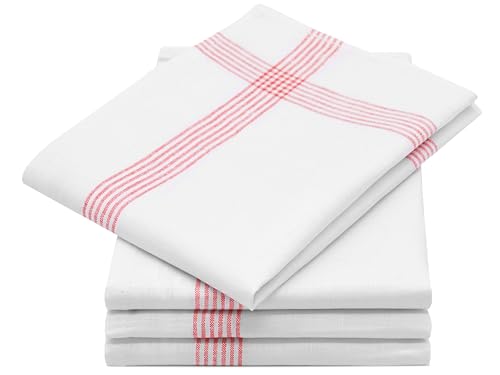 ZOLLNER 4 strofinacci 100% lino, 50x70 cm, bianco con righe rosse