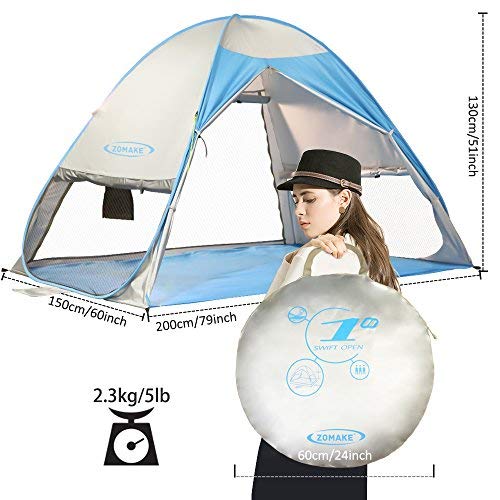 ZOMAKE Tenda da Spiaggia Automatica Pop-up Tenda da Sole Portatile istantanea con Protezione UV per 2-4 Persone per Spiaggia all'aperto