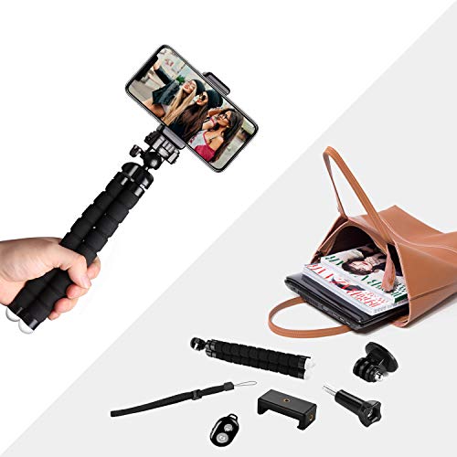 Zommuei - Treppiede Flessibile per Smartphone, con Telecomando Bluetooth, per iPhone, Samsung, Huawei, GoPro, Fotocamera Digitale, Handy Stativ-Schwarz