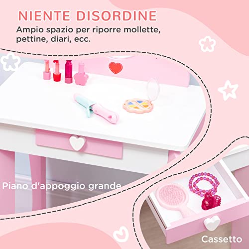 SET PER BAMBINI: Questo tavolo da trucco per bambini con motivi a cuori e fiocchi sarà la base dei sogni per la tua principessa, oltre che una bellissima aggiunta alla camera da letto o alla stanza dei giochi