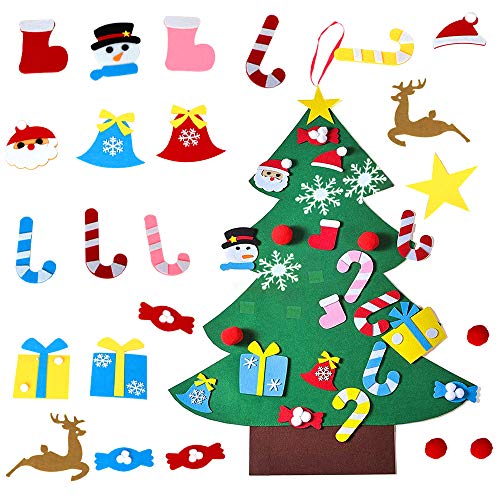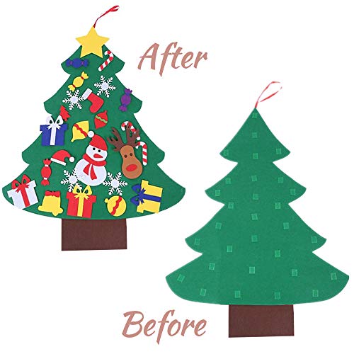 ZoneYan Albero Natale Feltro, Albero per Bambini, Alberi Natale Bambini, Albero di Natale Bambini con 26 Pezzi Decorazioni, DIY Staccabile Decorazione da Parete per Bambini Decorazione di Natale