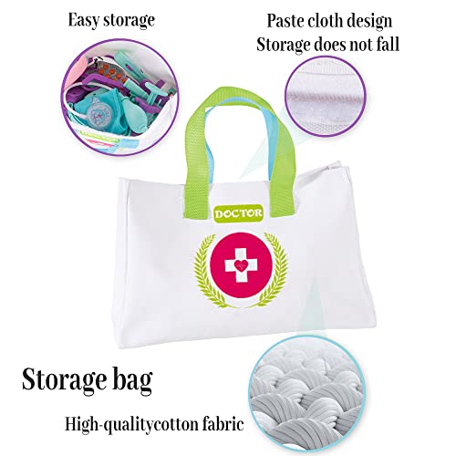 3. BORSA PORTAOGGETTI: Giocattoli del dottore viene fornita con una borsa messenger medica di alta qualità con un design in velcro, che non è facile da perdere e può facilmente riporre strumenti medici