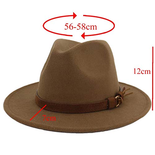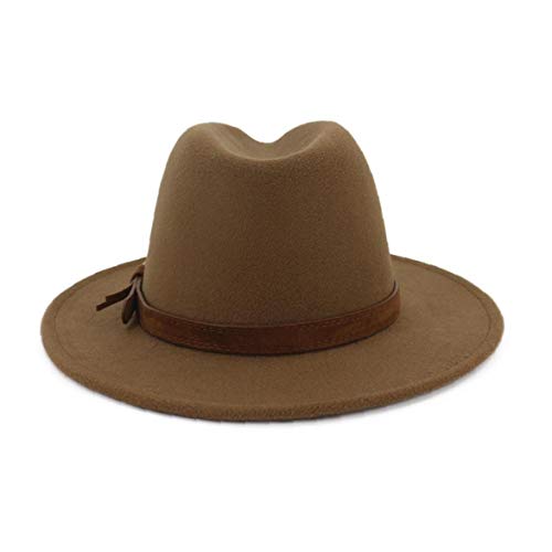 Zonfer Hat Fedora con Il Nastro Gentleman Pelle Signora Elegante Wide Brim Jazz Chiesa Panama Sombrero cap Khaki