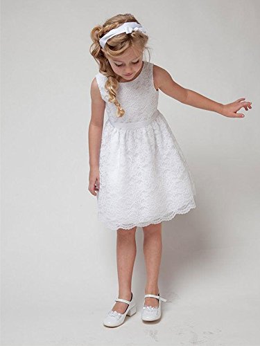 ZongSen Bambini Costume Ragazza Pizzo Floreale Collare Rotonda Senza Maniche Gilet Vestito Solido Colore Principessa Partito Tutù Bianco 90