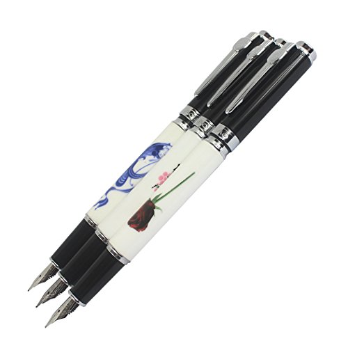 Zoohot 3 pezzi Jinhao 8802 Penne Stilografiche bianco e nero, Clip d'argento, tre schema
