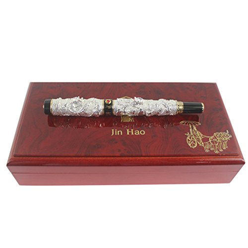 Zoohot stilografica Jinhao classico draghi che giocano con la perla 3D scolpito (argento)