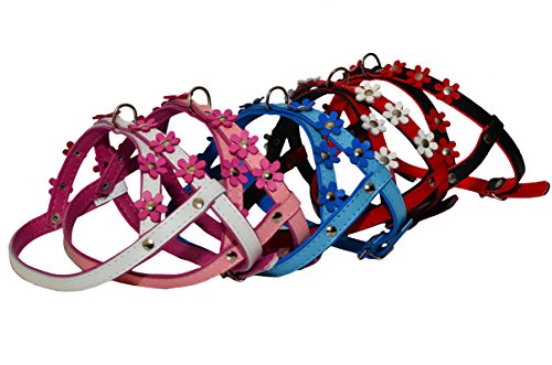 ZOOLESZCZ Bianco con fodera rosa e fiori rosa margherita morbida pelle cane cucciolo fiore margherita designer imbracatura colore imbottito (extra piccolo)