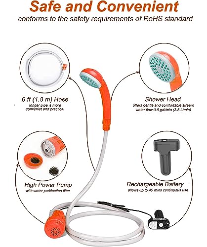 Zooma Doccia Campeggio all'aperto, Portable Camping Doccia Esterna, Outdoor Doccia Portatile da Campeggio, Doccia Portatile Doccia Campeggio Doccia Esterna (arancione (2 batterie))