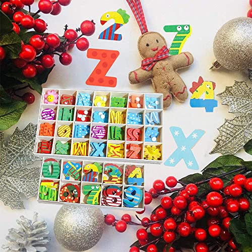ZOOMIL Lettere e Numeri in Legno Colorati, Puzzle di Legno Alfabeto, Giocattoli in Legno per Bambini, Mini Fiori di Legno, Decorazione per Bambini Giocattoli per la Prima Educazione (148 Pezzi)