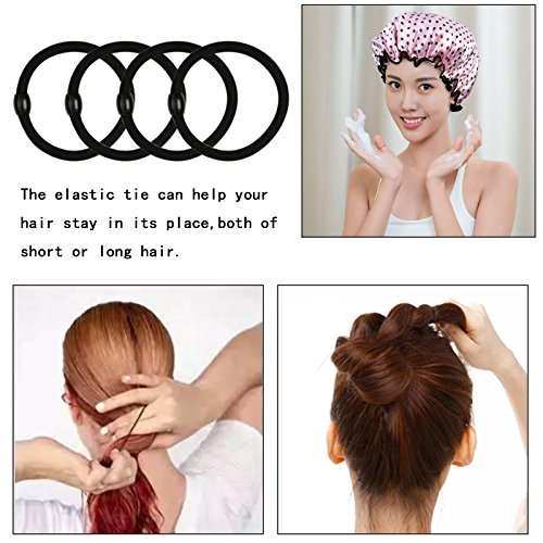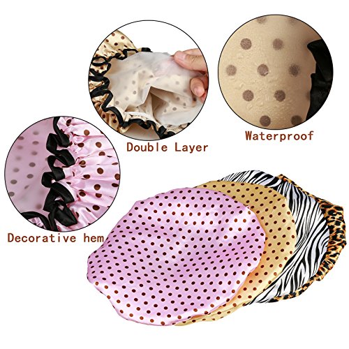 Modelli alla moda - Comprende 4 cuffie da doccia e 4 pezzi elastici neri, 3 diversi modelli alla moda, motivo a pois rosa e giallo, stampa leopardo e strisce zebrate, e orlo decorativo lo rendono elegante, soddisfa le varie esigenze.