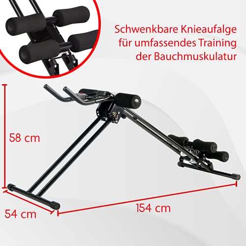 Dimensioni del trainer addominali zoomyo: L x P x A chiuso ca. 128 x 54 x 16 cm, dimensioni aperto ca. 154 x 54 x 58 cm - per peso max. utente 100 kg - peso: ca. 10 kg - nuova versione del 2015