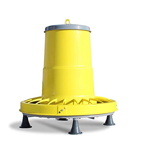 Zootec, Mangiatoia per Galline,Polli,Pulcini, Antispreco, 16 kg, Automatica, a Tramoggia, da Appendere, in Plastica, da Esterno e Interno, (Giallo/Grigio) - Made in Italy