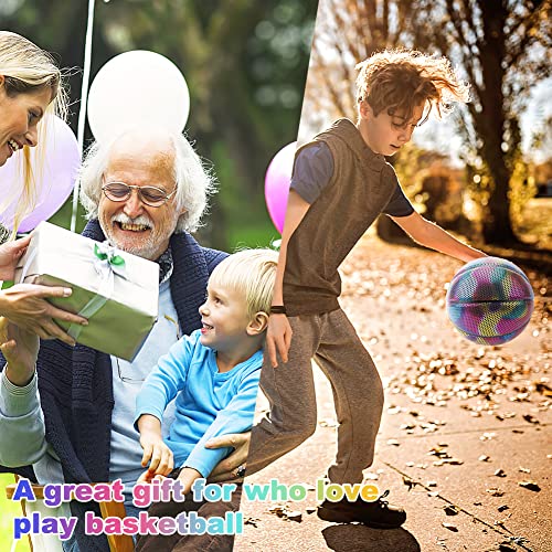 【Regalo unico】 - Il basket olografico con un motivo di design unico catturerà gli occhi del giocatore, è bello e stupendo sia fermo che in rotazione. Questi palloni da basket riflettenti con accessori completi sarebbero il regalo ideale per bambini, amici e familiari entusiasti del basket.