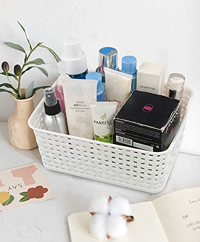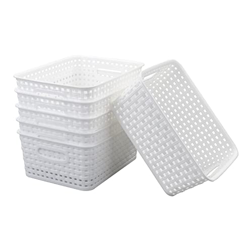 Zopnny Cestino portaoggetti in plastica rattan da 6 pezzi, cestino intrecciato piccolo, bianco