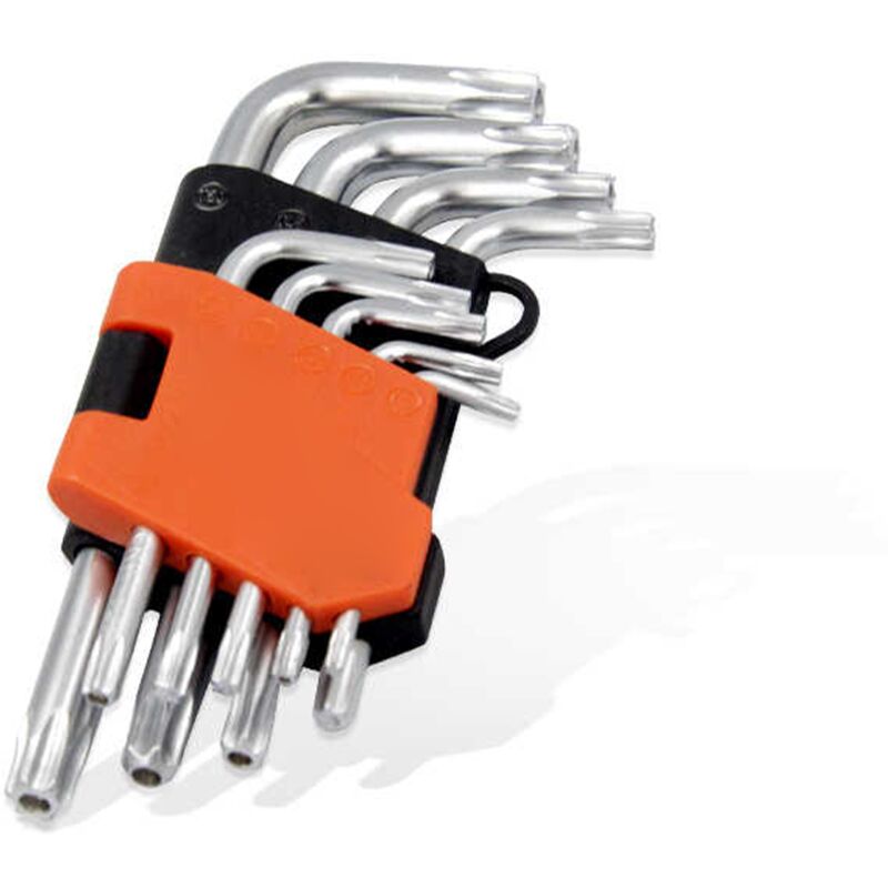 9 Pezzi Chiavi Torx A Brugola Con Seguenti Misure: T10 T15 T20 T25 T27 T30 T40 T45 T50 Materiale In acciaio CR-V, nichelato, lunga durata grazie alla struttura robusta Tutte Le Chiavi A Brugola Sono Prodotte Secondo La Standard TUV e GS Modello Con Taglio Piccolo: Lunghezza Lato Lungo Da Minimo 56mm Fino a Massimo 132mm 9 Pezzi Chiavi Torx A Brugola Con Seguenti Misure: T10 T15 T20 T25 T27 T30 T40 T45 T50 Materiale In acciaio CR-V, nichelato, lunga durata grazie alla struttura robusta Tutte Le Chiavi A Brugola Sono Prodotte Secondo La Standard TUV e GS Modello Con Taglio Piccolo: Lunghezza Lato Lungo Da Minimo 56mm Fino a Massimo 132mm