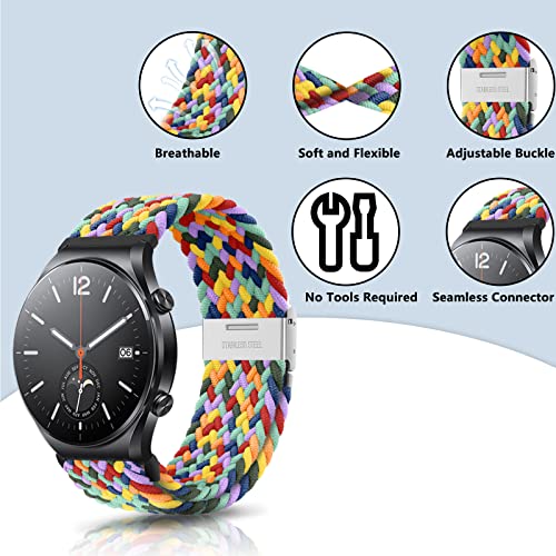 ZoRoll 22mm Cinturino per Xiaomi Watch S1 Pro/Watch S1/Watch S1 Active/Mi Watch, Nylon Intrecciato Regolabile Cinturino per Garmin Forerunner 265/Venu 2/Amazfit GTR 4/Galaxy Watch 3 45mm - Arcobaleno