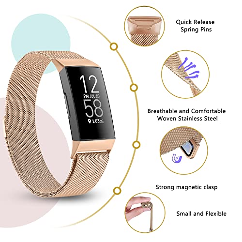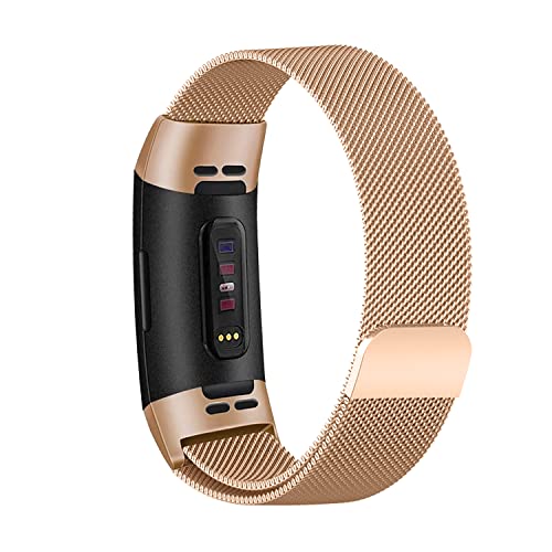 ZoRoll Cinturino Compatibile con Fitbit Charge 4/Fitbit Charge 3/Fitbit Charge 3SE, Inossidabile Intrecciato a Rete Metallo con Cinturino in Acciaio Compatibile con Fitbit Charge 4/Charge 3 - Oro Rosa